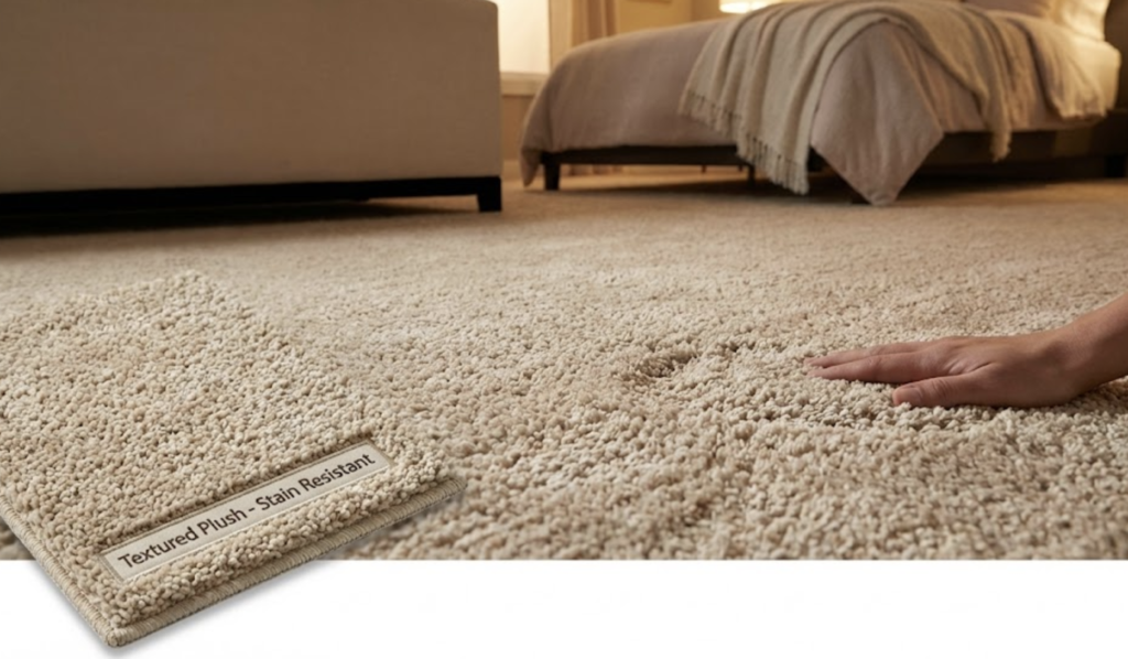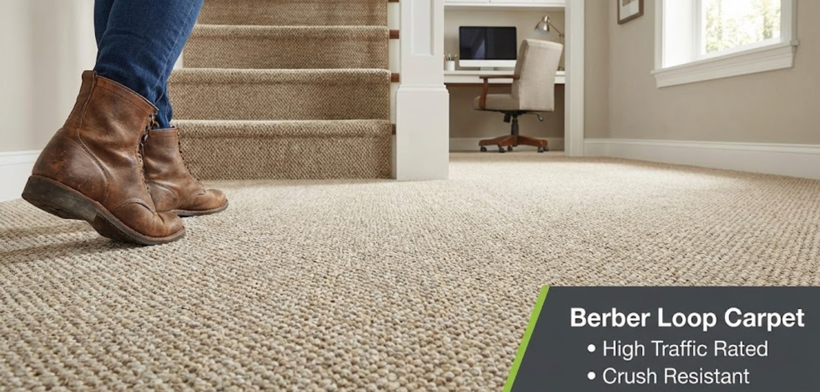 Durable, stain-resistant polyester or looped berber. Perfect for flips, rentals, and tight budgets.